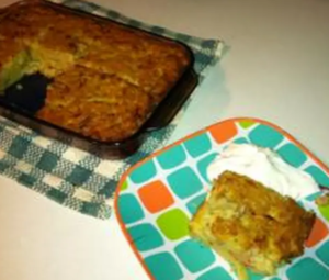 Serve sliced squares with a dollop of sour cream and chopped chives.