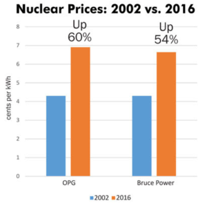 Since 2002 Ontario Power Generation’s (OPG’s) price of nuclear power has risen by 60%. And to add insult to injury OPG is now seeking a 180% price increase to pay for the continued operation of its high-cost Pickering Nuclear Station and the re-building of Darlington’s aging reactors.
