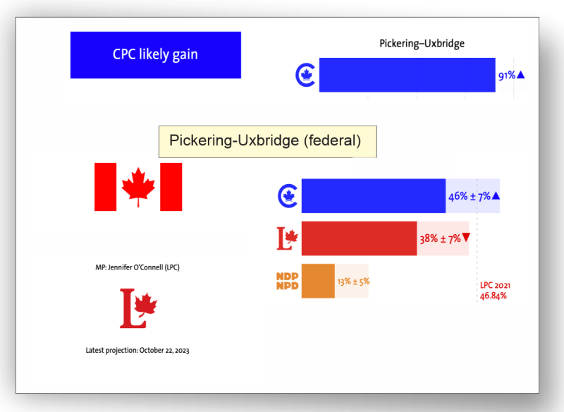 If the polls are correct, there is a 91% chance that Pickering would elect a Conservative Member of Parliament if an election were held today. (338Canada.com)