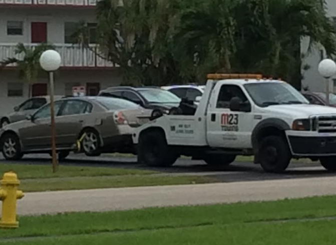 This legitimate fear in the older people in Florida extends itself to their properties. Their condos, their apartment towers have parking lots and parking facilities which are patrolled by security companies 24/7. Signs are posted warning trespassers about the constant surveillance. More signs caution drivers without appropriate business in the area, to be aware that unknown trespassers may have their cars tagged, wheel locked, or even towed away. At one building we passed, we saw three flatbed tow trucks loading up vehicles for taking away.