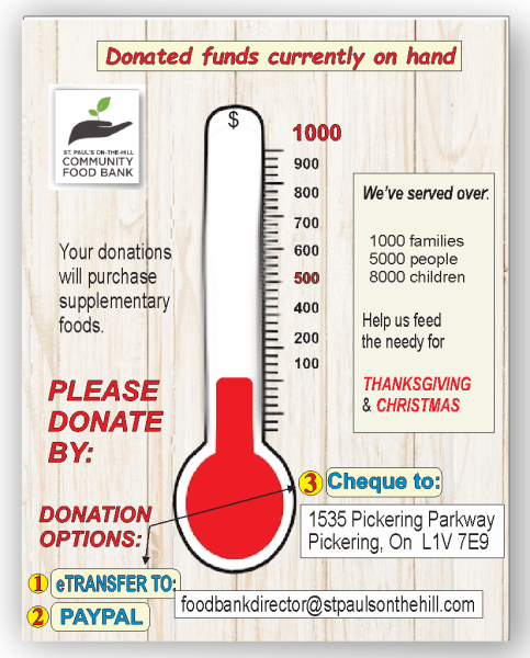 - eTRANSFER to foodbankdirector@stpaulsonthe hill.com