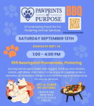 Join us for the Pawprints of Purpose BBQ on Saturday, September 13, from 1-4 PM at 909 Beachpoint Promenade. Enjoy food, games, and pet services. Donations support City of Pickering Animal Services. A rain date is set for September 14.