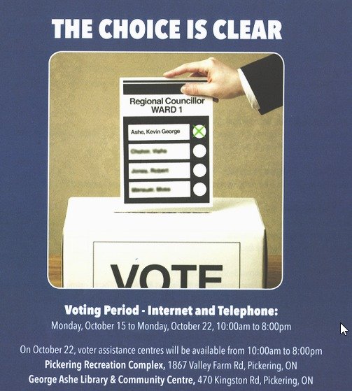 “The Ashe Family have offered over 5 decades of service to the good people of Pickering. Ward 1 residents would be well advised to continue this tradition on October 22nd.’