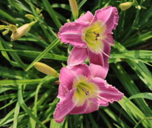 Today….Sat Aug 1st….is M/R Day in the Telephone City. ‘M/R’ being Mary Rutherford, Miz. Jo’s Mother, a ‘centurian’ who passed away few years back in her 102nd year. When Mary reached the age of 75, a couple of her close friends had a Day Lily ‘developed’ bearing her name to honour the occasion at a day lily farm near Orono, Ontario. The farm is not in business any more, but over the years they had many orders for M/R bulbs….not to mention family and friends of Mary….of which there are many….digging up some of their own to hand over/pass around to others. Not sure if I can say M/R’s are found coast to coast, tho they live/grow all over Ont, and I’d bet Mary is as far west Alberta, perhaps even B.C. Anyway, last Wed Miz. Jo was up visiting Allan (not his real name), a kindly old gentleman from Listowel, and he dug up two clumps of M/R bulbs for her….then on Thurs ayem Shelley (not her real name) The Garden Lady here was nice enough to plant them for us in one of several gardens Skyline Living maintains down front….and we can see the M/R’s from our balcony! Rotzy’s keen eye noticed one ‘scape’ appeared ready to bloom at tyme of planting, so I kept checking it yesterday (Friday), whilst predicting it would open up today. And Bingo!! I’ve advised Joan, Mary, Bill, Karen, and cetera (not their real names) here in our building of the ‘Grand Opening’ and Miz. Jo will be down there with her i-Pod/camera to record the event! No doubt getting it out and about on Facebook*tm. *UPDATE….Sat 10:48AM….we’re just back from the foto session, Jo Ann leading the way down to the garden with her walker on ‘Cruise’ at about 25 MPH….and she got lots of pics! So….SO…. here’s a “F/N” tip of the Tilley Gardener’s Hat to the dozens and dozens (hundreds?) of keepers of Mary Rutherford Lilies….now also found in Brantford!!