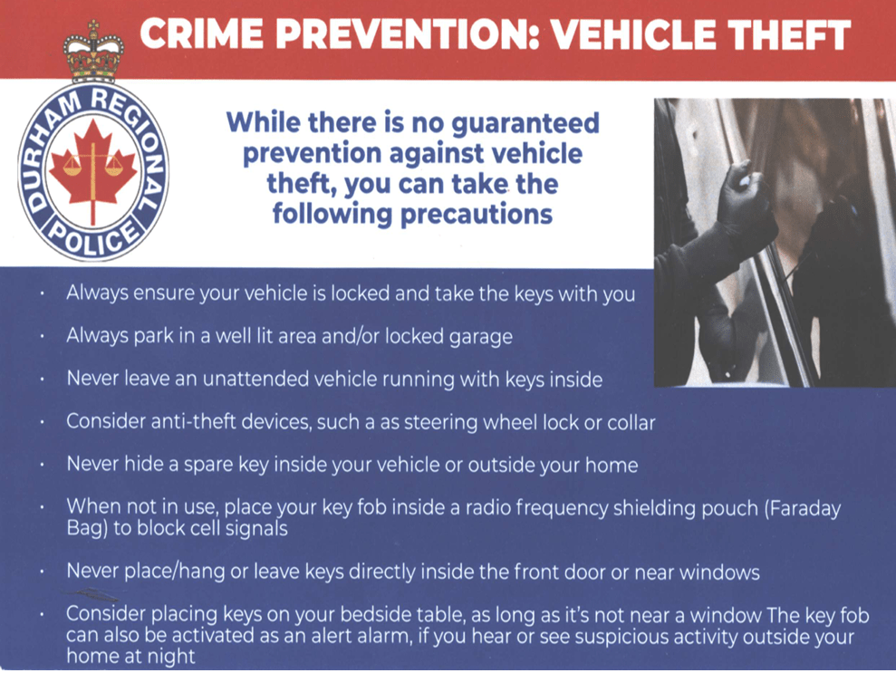 CAR THEFT: Common sense advice from DURHAM REGIONAL POLICE