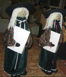 Years ago, a close friend of my in-house, licensed sous chef, gave us a set of three caroler dolls. I loved them. So seasonal, so ‘Christmasy.’ Their beauty seemed to encapsulate the spirit of the season perfectly. I suggested to the sous chef that we try making some models ourselves and give them away as gifts. The idea became our Christmas project, a family affair, as we recruited more and more family and friends into our caroler-making task.