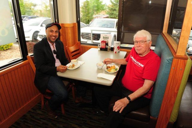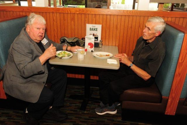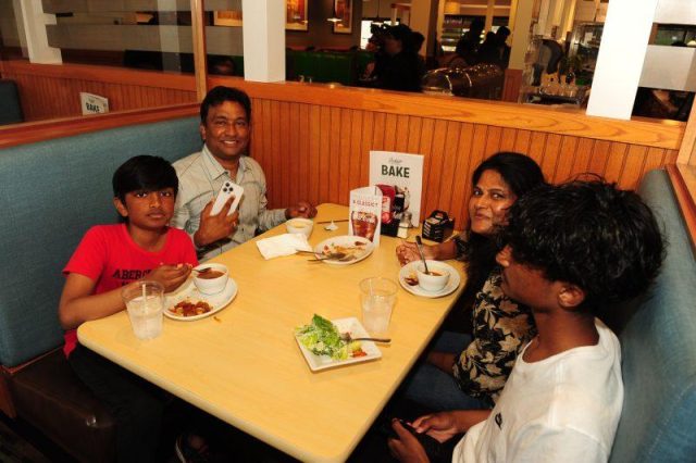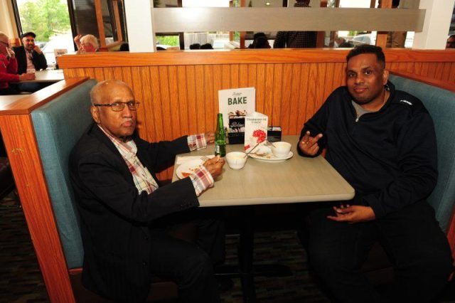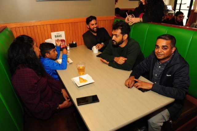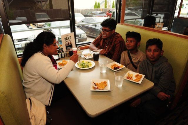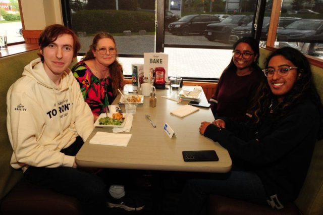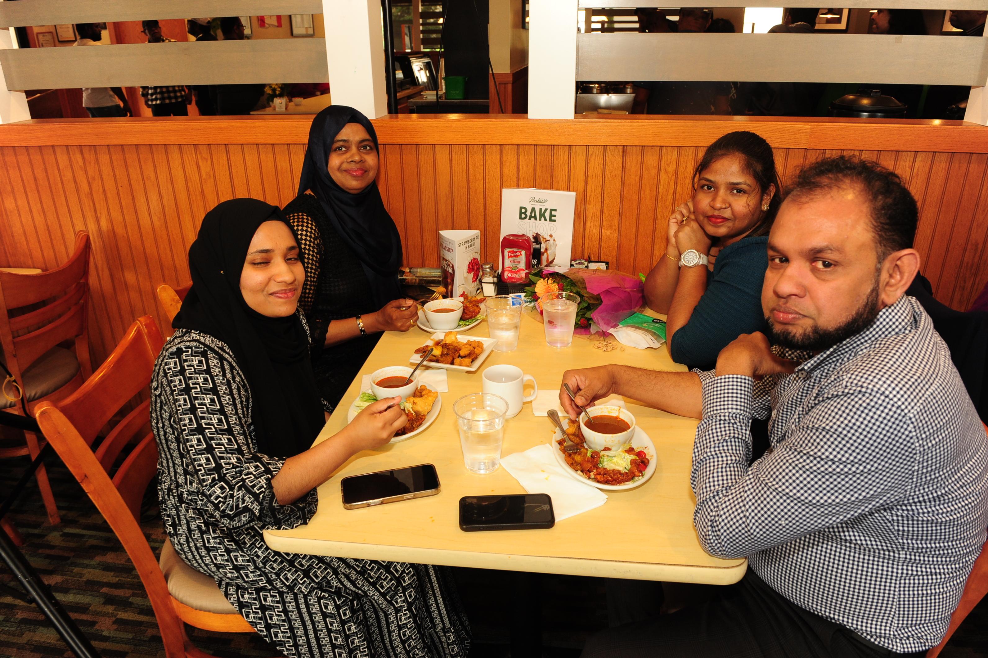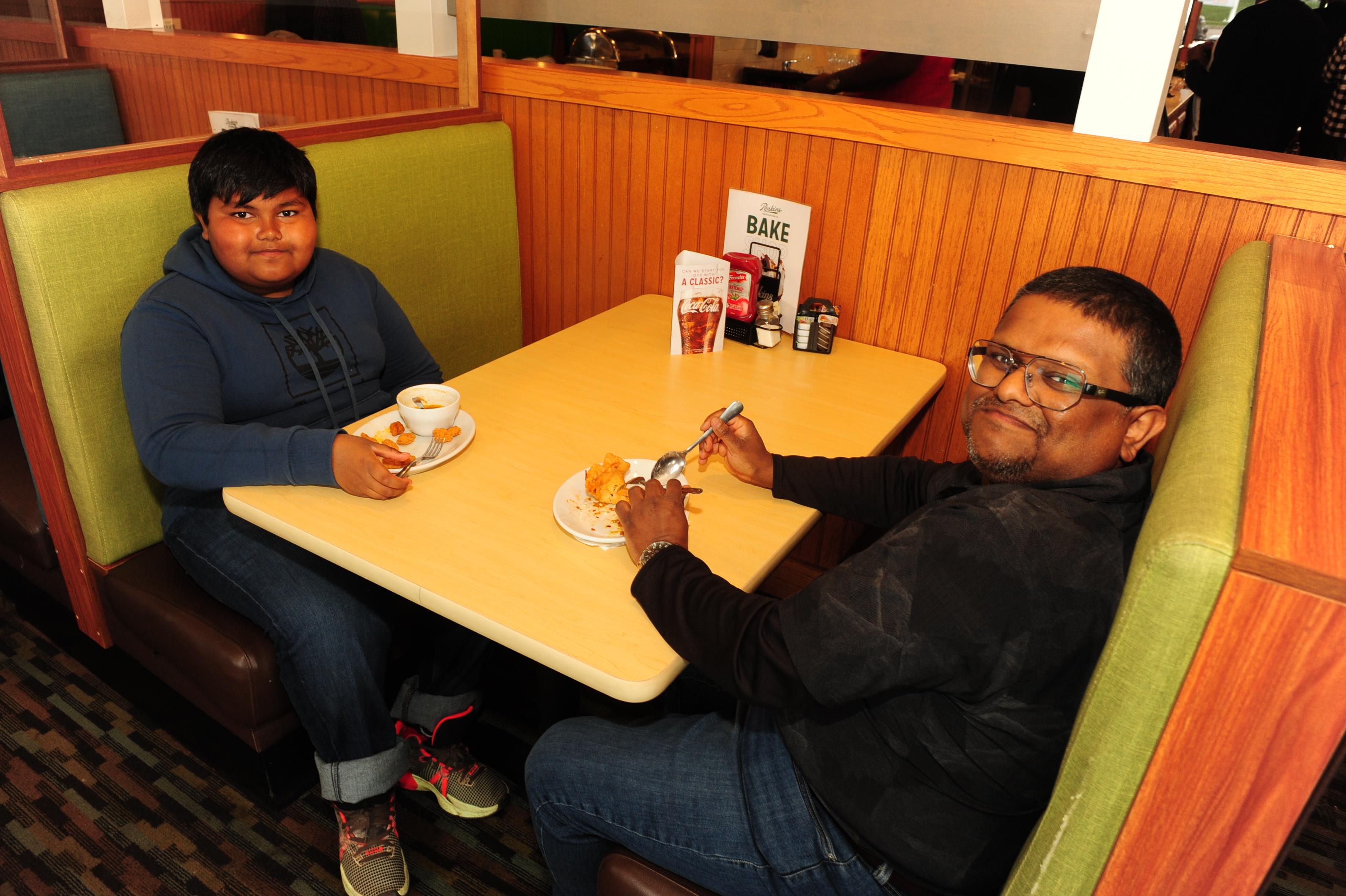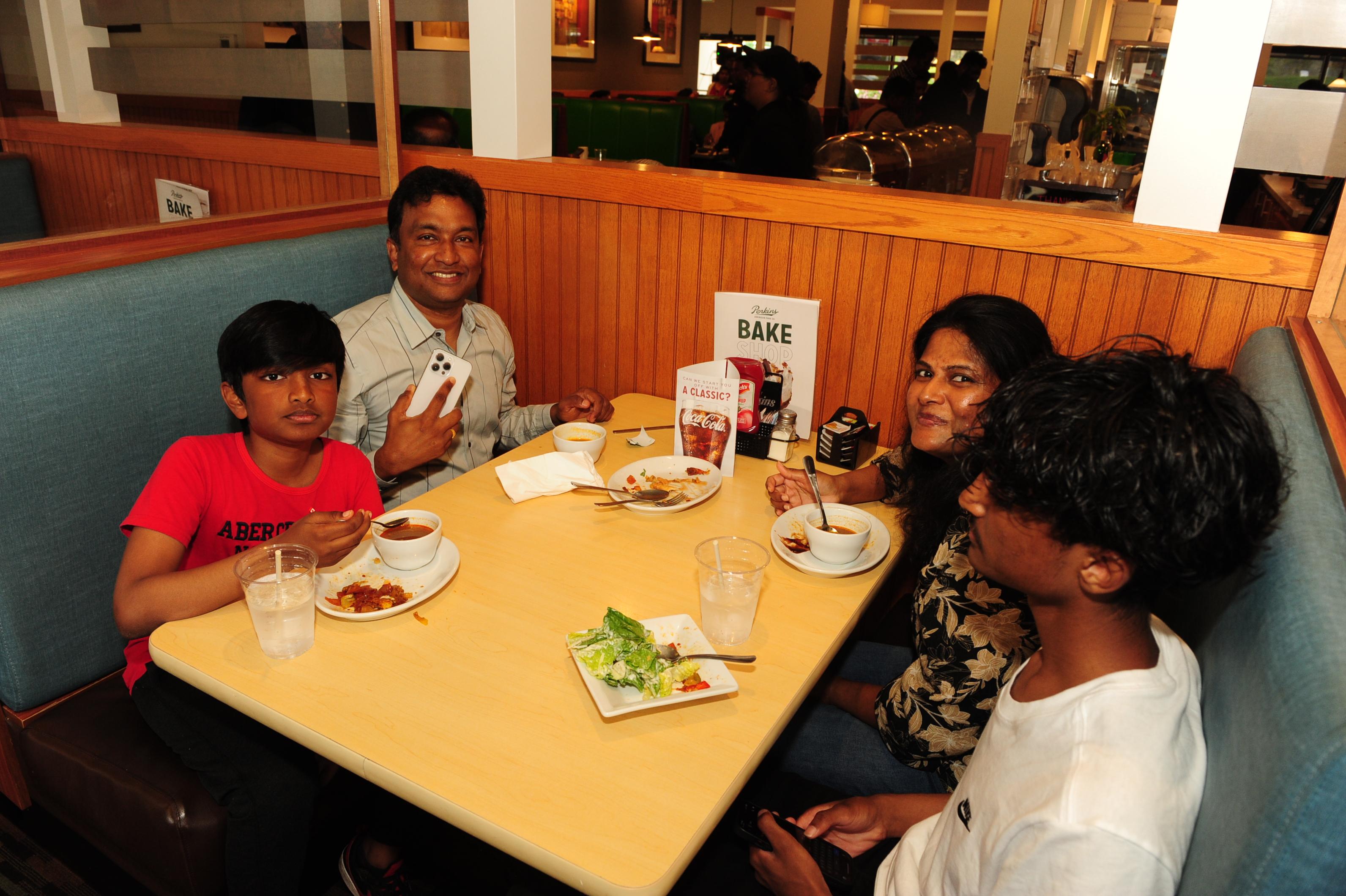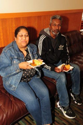 A delicious buffet was set up by the volunteers. Everyone hungrily loaded up their plates as they waited for Nathan.