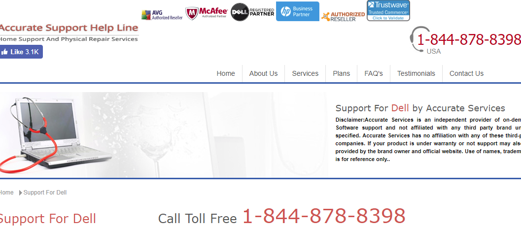 Later in the day when I had time to find the DELL number I had in my computer records, I phoned DELL tech support where in the course of repair I learned the phone number above was NOT a DELL number. In other words, fraudulent.