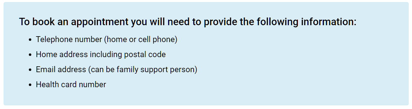 If you answered yes to any question, 6-9, consult with your doctor prior to booking a vaccination appointment. If unable to reach your physician, you may access a virtual medical consult, click here https://durhamvirtualurgentcare.lh.ca.