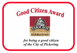 FARM BOY, without a doubt, you deserve the award for Good Citizenship! As well, a tip of the Good Citizenship cap should be given to FARM BOY manager, James Lefroy and his assistant, Ken Mitchell.