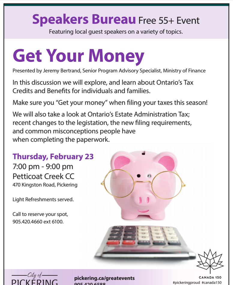 Speaker about PERSONAL FINANCES to speak in Pickering…