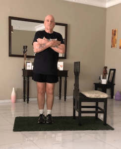 The Romberg stance is scored by counting the seconds the person can stand with eyes closed. Practise each day.