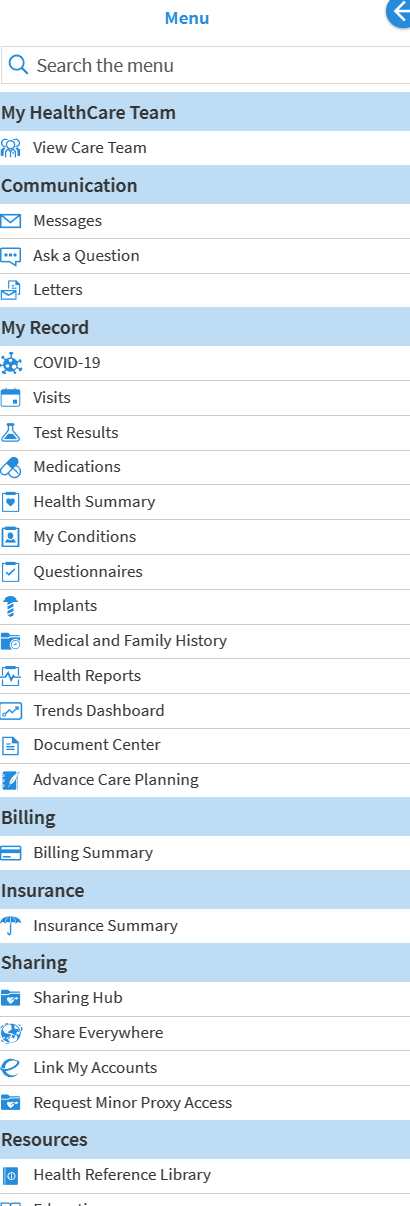 • View and print your diagnostic imaging results (examples: x-rays, CT scans, MRIs) from ‘test results’.