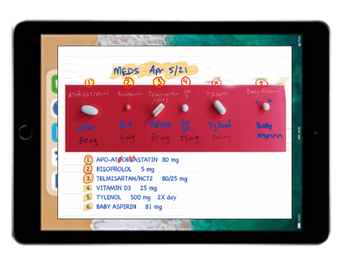 Rather than trying to remember on the spot, you can easily show your medical professional something like this on your ipad (or any information you photographed and stored on your ipad/cell phone:
