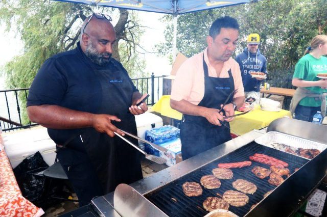 The BBQ pit was smokin’ managed by two of the best outdoor BBQ chefs in all of Durham, Chefs Ajib and Chef Karim. They charred up an endless supply of hamburgers, hamburgers with cheese bits, and hot dogs so big they could have been used for floats on the nearby waters. In fact, Councillor Shaheen Butt was enthusiastic about evaluating Richard Szpin’s swimming capability never tested though, thankfully.