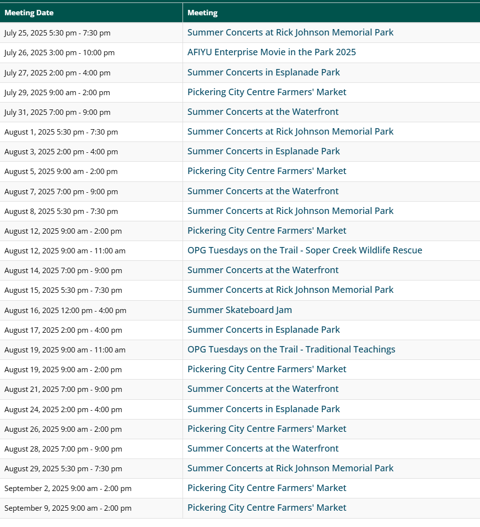*** Pickering EVENTS*** ( Sept 11 – Oct 27 )