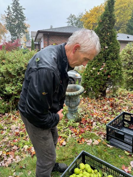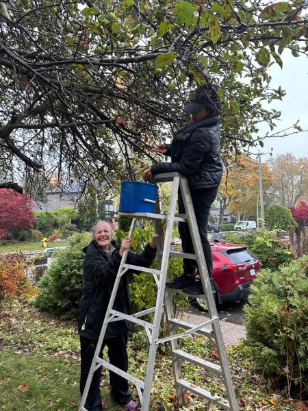 The gallery here shows the executive harvesting apples which will be donated to the St. Paul of the Hill Food Bank. Some needy folks are going to taste the delicious bounty that grows in  the Fairport Beach neighbourhood of Pickering.
