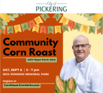 Mayor Ashe held his 1st annual CORN ROAST, Saturday, Sept 6 at Rick Johnson Memoral Park in north Pickering. More than three hundred Pickering residents attended joined by the Ward’s Councillors, Dave Pickles and Shaheen Butt, along with other politicos: Juanita Nathan, Alicia Vianga, Maurice Brenner, and Lisa Robinson.