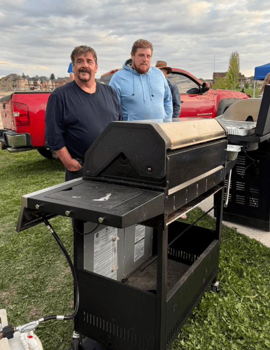 The late summer early evening was temperate and comfortable so the long lines for the roast corn were comfortable for the waiting crowd. The corn, picked locally, was roast on BBQ’s manned and managed by BBQ #1 Chef Frank: