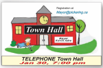 - Finally, an invitation to attend my Town Hall, which is done, Telephone Town Hall this Thursday, January 30th, 7 p.m.. You can, register at the link below or get information at Pickering.ca. Look forward to hearing your comments and questions at 7:00 on Thursday.