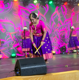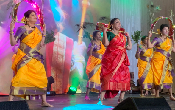 The performances showcased traditional Tamil dance in spectacular fashion. Dancers of all ages—from young teens to accomplished matrons of the community—took the stage in stunning traditional attire. Brilliant yellows, shimmering golds, rose reds, and deep indigo blues created a visual symphony as performers executed meticulously choreographed routines with precision and passion.