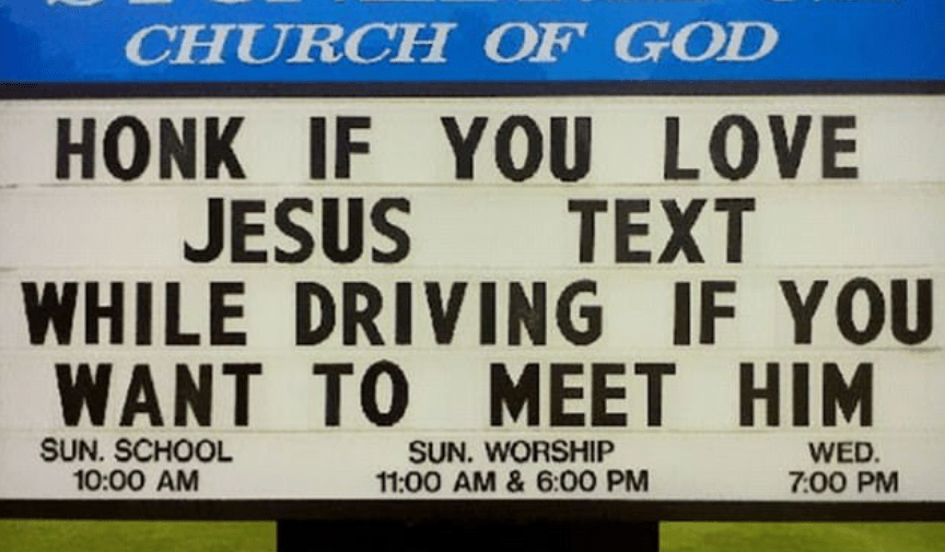 Road signs seen in the American Bible belt
