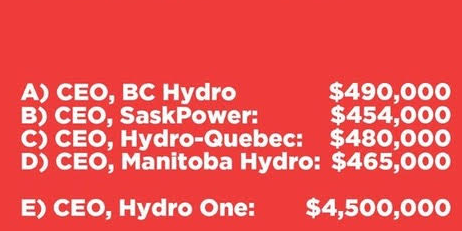 Take a look at the salary paid to the CEO of Hydro One and then go look at your hydro bill.