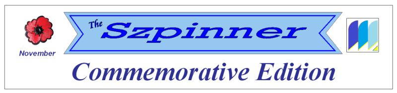 The November issue of The Szpinner newsletter will be a special Commemorative Edition, a limited edition with many Remembrance Day pages, stories and memorabilia and dedications to all Canadian armed forces veterans.
