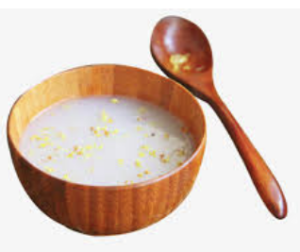 Since Grandfather had broken a dish or two, his food was served in a wooden bowl.