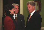 Anyone versed in Maxwell’s tastes would deduce that Clinton was an obvious conquest from the onset — as is overwhelmingly apparent in the photos documenting their introduction, where she looks like she wants to devour him. He was everything she was drawn to: immensely charismatic, articulate, intelligent, cultured, powerful, not to mention rich and hyper sexual, and said to appreciate the affection of older women because his ego preferred his intellect flattered.